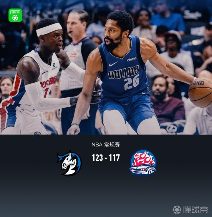 独行侠123-117小胜活塞,丁威迪爆发砍31+7,坎宁安空砍35分