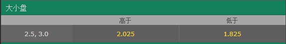 大小盘:2.5/3盘口小球低水