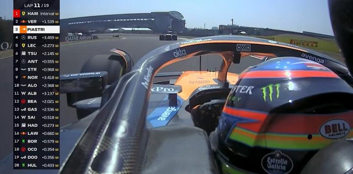 第16圈,皮亚斯特里在发卡弯完成了对维斯塔潘的超越,名次上升到第2位。