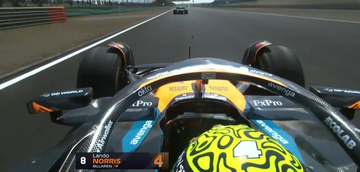 第一圈,勒克莱尔被拉塞尔超越,掉到第五,而诺里斯因为第六弯的失误,名次掉落到第9。