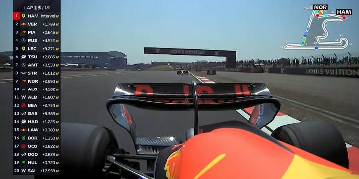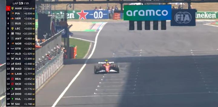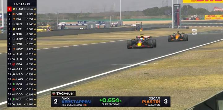 第12圈,加斯利、哈贾尔和劳森相继超越了赛恩斯,皮亚斯特里和维斯塔潘之间的距离也缩小到了1秒以内。
