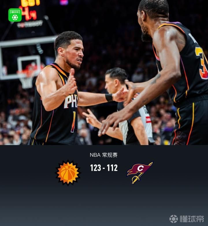 第四节太阳杜兰特拿下10分,骑士达里厄斯-加兰拿下9分,最终太阳123-112战胜骑士