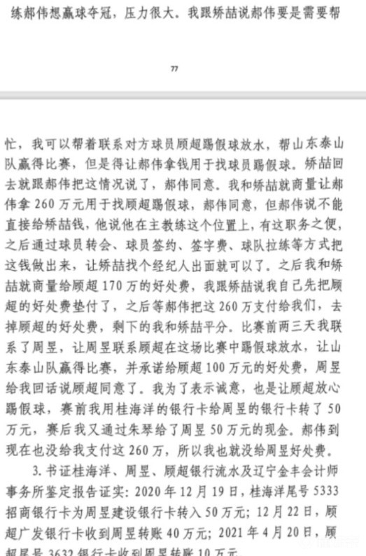 网传判决书:20年足协杯决赛,山东vs江苏存在假球行为东方蹴鞠 @懂球帝2025-03-22 20:47根据网传判决书内容,2020年12月19日,足协杯山东vs江苏的足协杯决赛中,朱宏兴与矫喆收取郝伟260万元,二人共同商议联系江苏苏宁队球员踢假球。二人还向顾超支付100万元好处费。网传判决书具体内容比赛相关链接事不过三!山东2-0江苏获足协杯冠军,王彤、宋龙建功展开更多