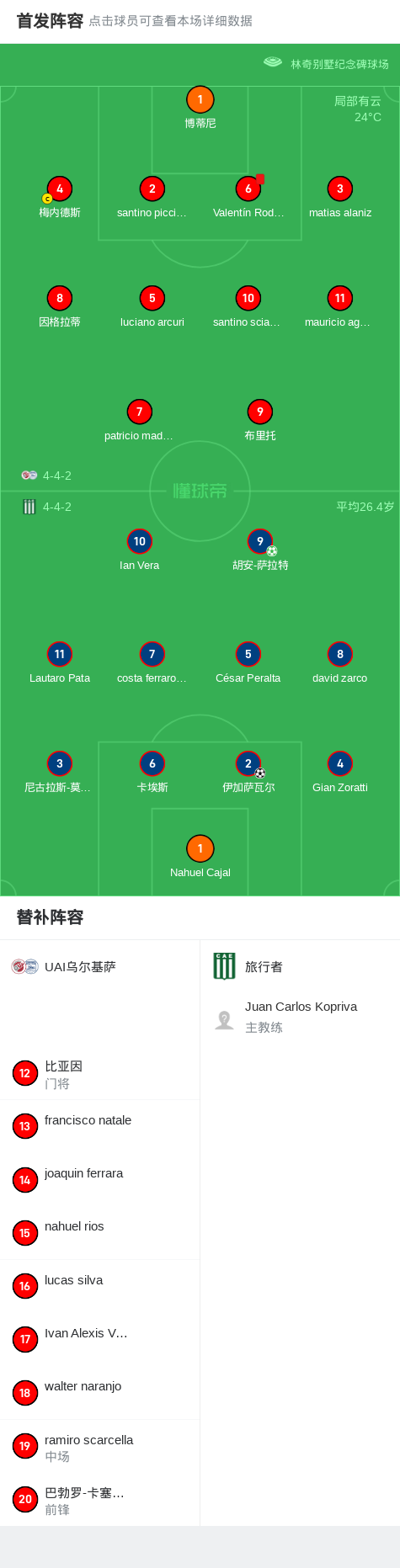 第22分钟,UAI乌尔基萨球队Valentín Rodríguez吃到红牌。