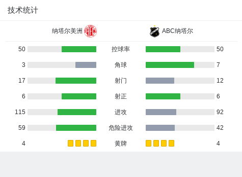 第85分钟,纳塔尔美洲球员索萨打入一球。