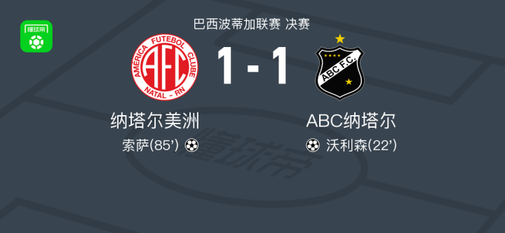 纳塔尔美洲1-1ABC纳塔尔,沃利森打破僵局,索萨救主