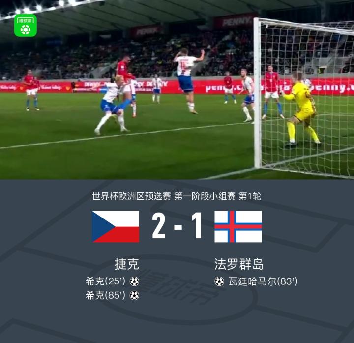 世界杯欧洲区预选赛第一阶段小组赛首轮,捷克与法罗群岛展开较量。比赛中,捷克队的希克表现出色,凭借两粒进球为球队奠定优势。法罗群岛方面,瓦廷哈马尔抓住机会完成破门,为球队扳回一城。最终,双方战罢,捷克以2-1战胜法罗群岛。