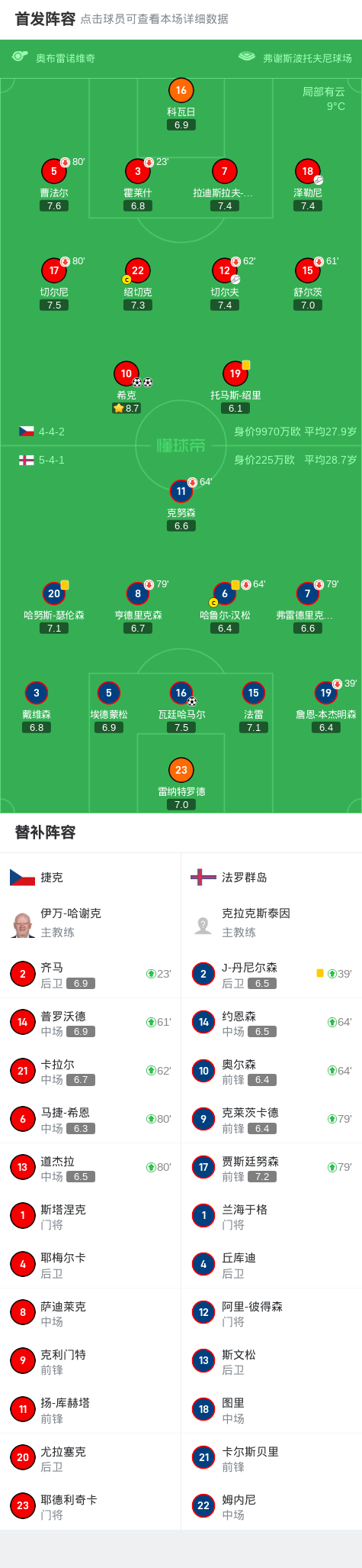 捷克2-1法罗群岛,希克梅开二度,瓦廷哈马尔破门