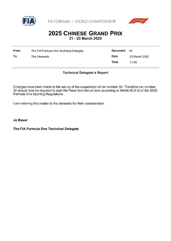 还能更烂?红牛车手劳森更换悬架,中国站正赛将从维修区发车凡尔赛小木屋 @懂球帝2025-03-23 14:293月23日15点,新赛季F1中国大奖赛正赛将在上海国际赛车场打响,赛前,昨日排位赛垫底的红牛车手劳森确定将从维修区发车。F1官方确认,由于劳森在排位赛后更换悬架,因此按照规则,这位新西兰车手正赛将从维修区起步。新赛季首站澳大利亚站中,劳森在排位赛垫底,正赛第47圈,劳森在2号弯打滑上墙,赛车尾翼严重受损被迫退赛。展开更多