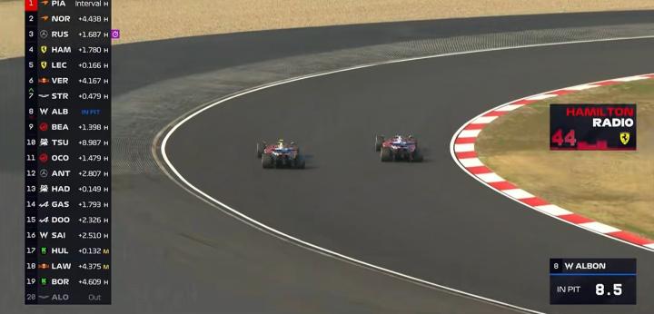 第21圈,根据车队指令,汉密尔顿将第4名位置让给勒克莱尔。