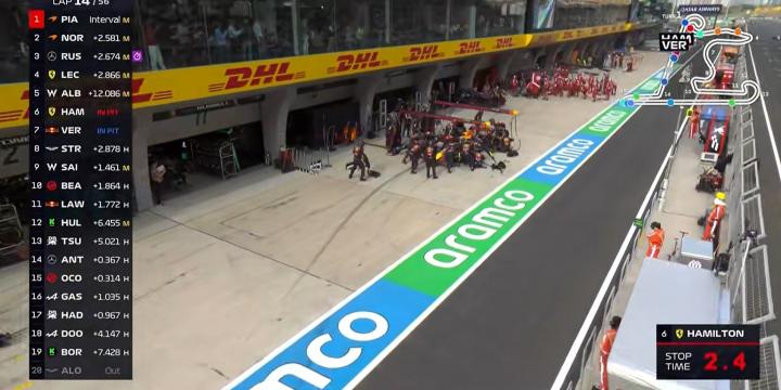 第14圈,汉密尔顿和维斯塔潘相继进站。