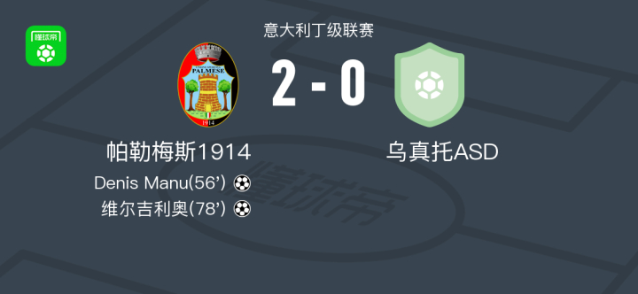 帕勒梅斯1914 2-0乌真托ASD,Denis Manu建功,维尔吉利奥锁定胜局