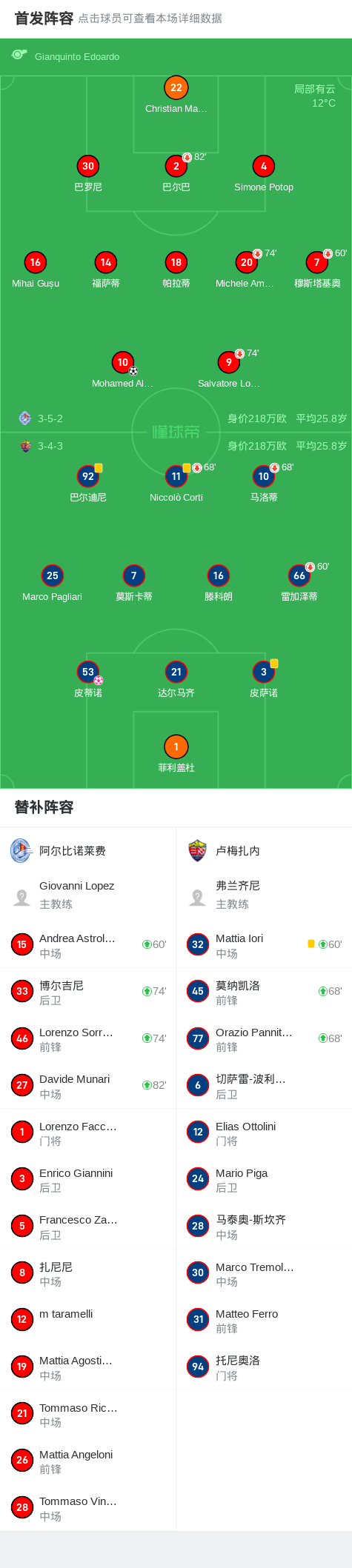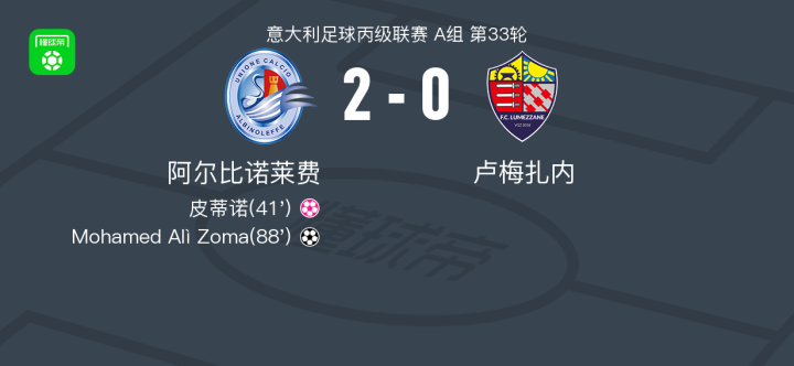 第88分钟,阿尔比诺莱费球员Mohamed Alì Zoma打入一球。