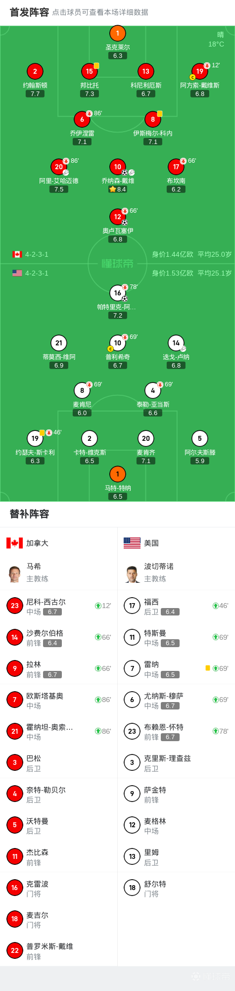 第27分钟,奥卢瓦塞伊破门先拔头筹,加拿大1-0