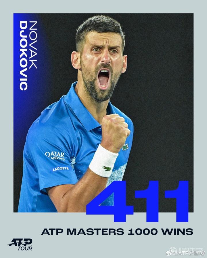 据统计,这是德约科维奇职业生涯第411场大师赛胜利,他也超越纳达尔(410),成为自1990年该赛制推出以来获胜最多的球员。