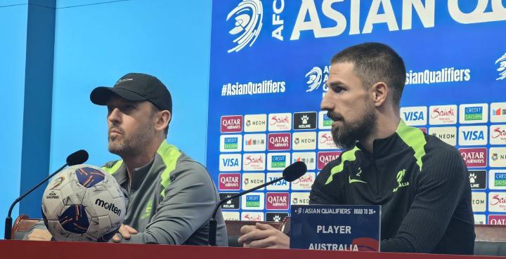 北京时间3月24日,世界杯预选赛亚洲区18强赛中国vs澳大利亚的赛前新闻发布会在杭州奥体中心举行。澳大利亚队主教练托尼-波波维奇携球员德格内克出席。