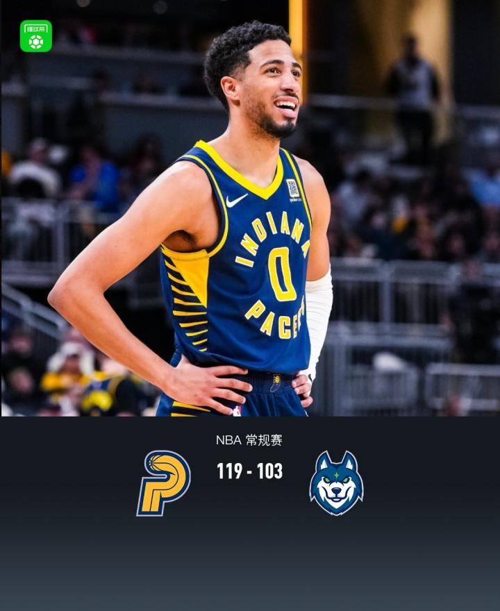 步行者119-103力克森林狼,哈利伯顿24+4+11,爱德华兹17分