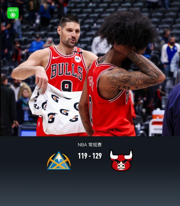 第四节掘金布劳恩拿下8分,公牛达伦-特里拿下8分,最终掘金119-129不敌公牛