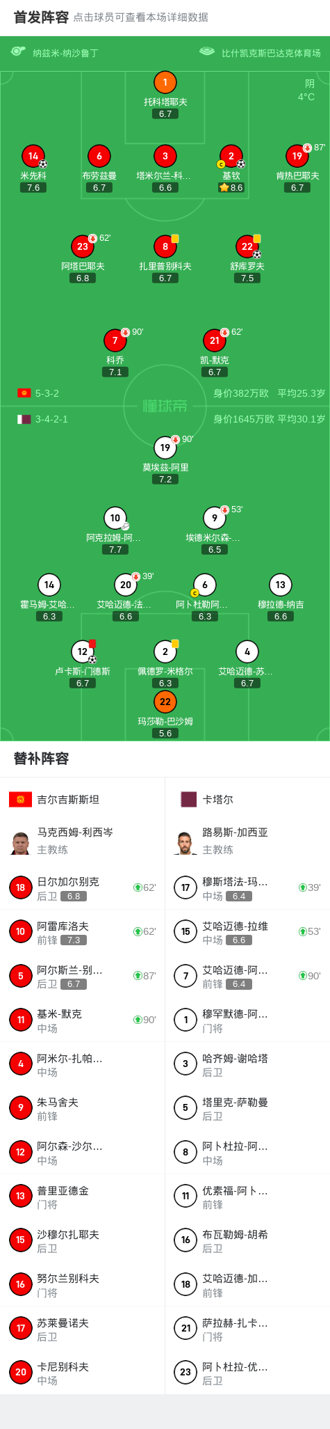 吉尔吉斯斯坦3-1十人卡塔尔,米先科世界波,门德斯破门+染红