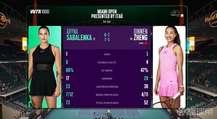 在萨巴伦卡的发球胜赛局中,她直落4分拿下比赛,生涯首次进入迈阿密站4强,半决赛对手将是保利尼。
