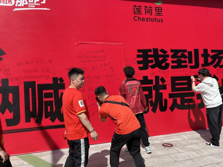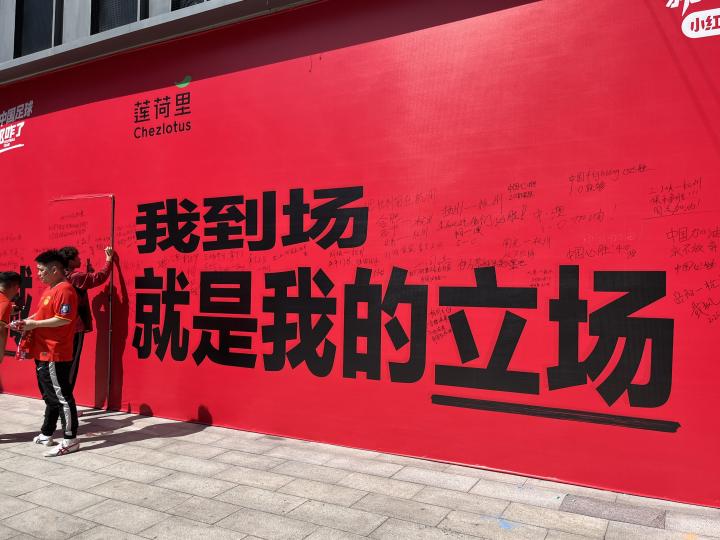 3月25日下午,在杭州的大莲花体育场外,小红书以“就支持中国足球那咋了”为主题,在球场外设立了球迷签名墙,吸引了众多球迷前来签名合影。