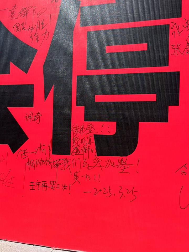 我到场就是我的立场,多位球迷在大莲花场外的签名墙留言合影