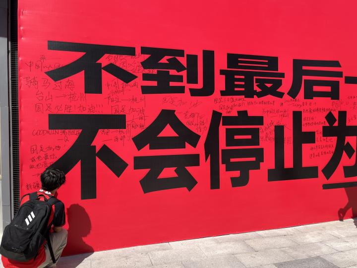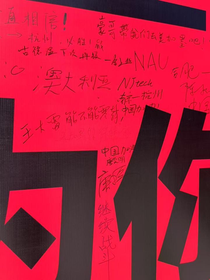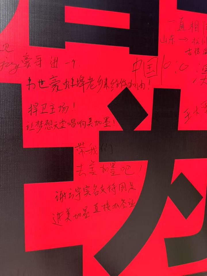 小红书的签名墙上印有“不到最后一秒,不会停止为你呐喊”“我到场,就是我的立场”的标语,来自全国各地的球迷们也纷纷留言:
