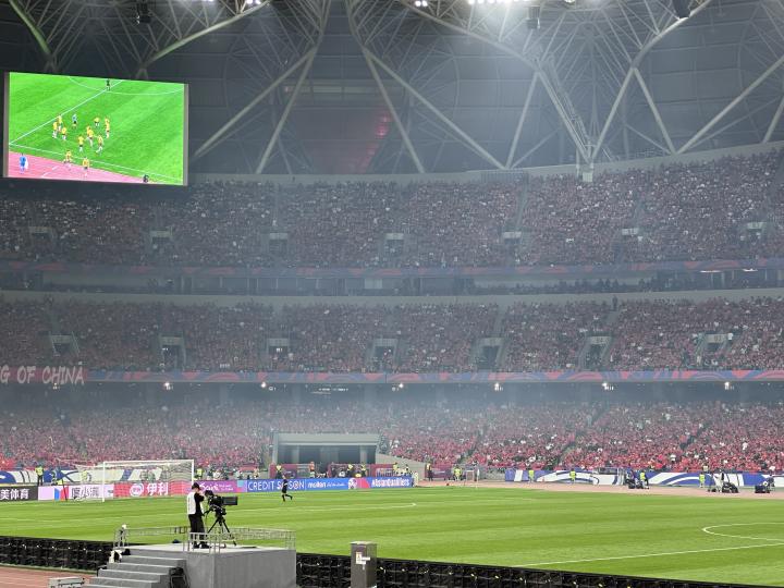 但国足没能扳回一球。比赛来到80分钟时,我几乎就已经准备提前退场——毕竟,7万人的球场一旦到终场哨响后,谁也不知道要多久才能顺利离场。我还要赶高铁回上海,这是打工人在周中的国际比赛日跨省看球不可避免的经历。