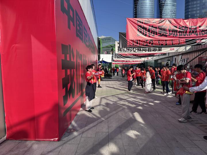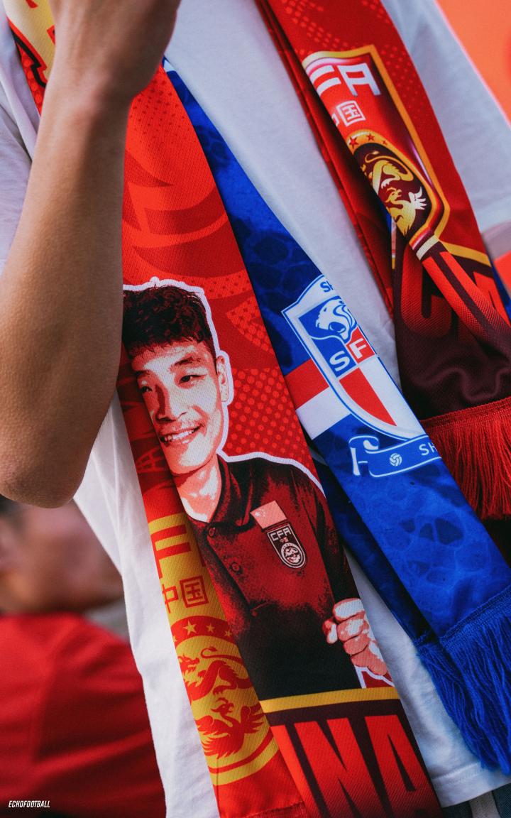 走到莲荷里,从那个很有特色的楼梯向下,旁边的巨大红色广告板让人忍不住驻足。各色国足球衣,甚至是各色的俱乐部球衣都逐渐出现。球迷是极具创意的,哪怕只看红色,我也能看到数不过来的俱乐部球衣。成都、长春甚至是梅州,以及曼联、利物浦、阿森纳先后闪过,尽管队徽各不相同,却给人一种特别的亲切感。