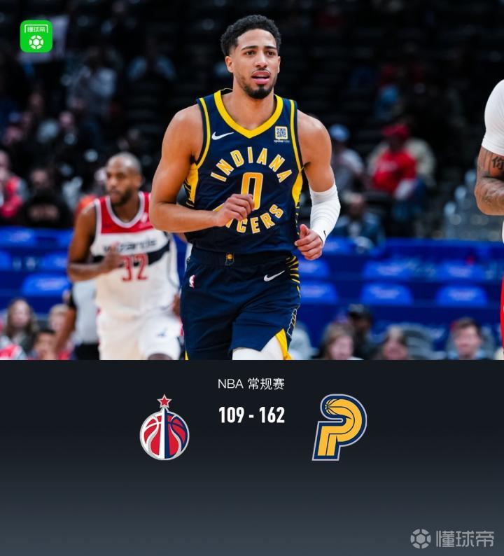 步行者162-109血洗奇才,哈利伯顿29+6,萨尔22+7
