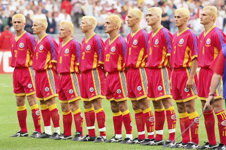 足坛上一次出现奇怪的团队染发事件是在1998年世界杯期间,以哈吉为首的“黄玫瑰”罗马尼亚军团。当年世界杯小组赛,罗马尼亚与英格兰、哥伦比亚和突尼斯同组,赛前主帅约尔德内斯库与队员打赌,如若小组第一出线,自己剃光头,全队染黄发。结果小组赛前两场罗马尼亚分别战胜哥伦比亚和英格兰提前晋级,首发11人全部是金发的一幕也就成为了世界杯历史上的经典一幕。