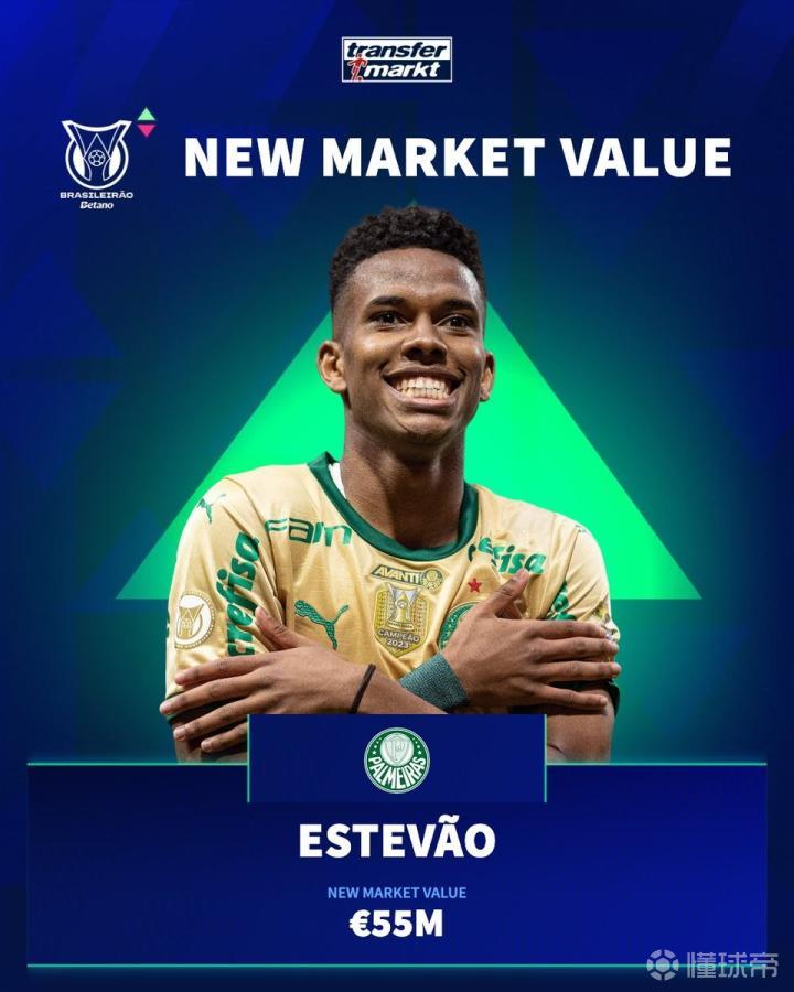 据统计,埃斯特旺成为巴甲历史上身价第二高的球员,仅次于恩德里克,后者在去年夏天加盟皇马前的身价为6000万欧。