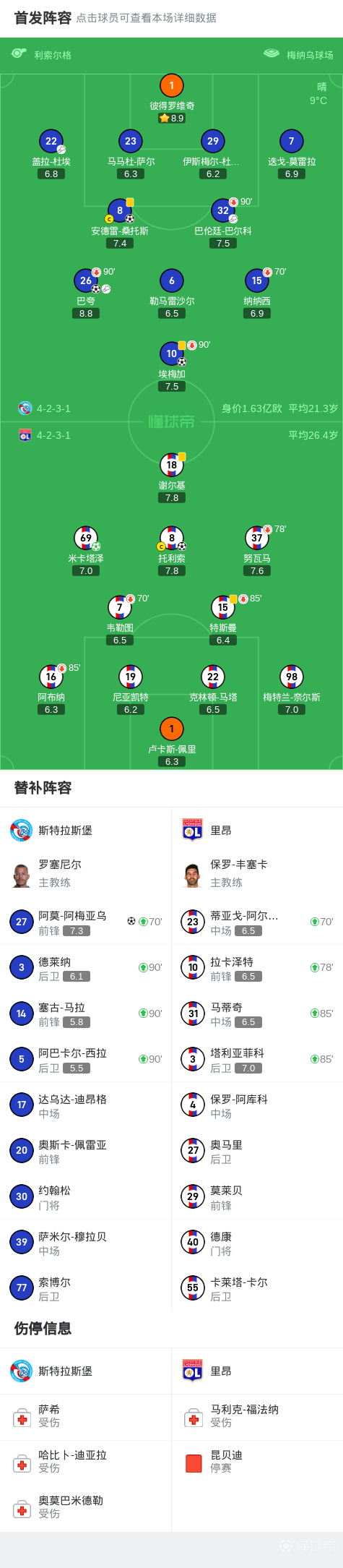 斯特拉斯堡4-2里昂,巴夸传射,埃梅加、桑托斯、阿梅亚乌破门
