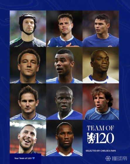 切尔西官方公布120周年历史最佳阵容:德罗巴、兰帕德领衔