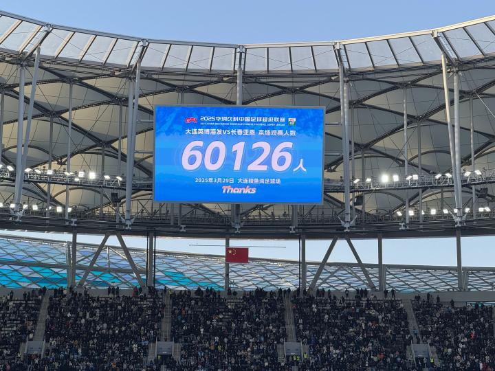 大连英博队史中超主场首秀共到场60126人,创中超历史第二高上座纪录