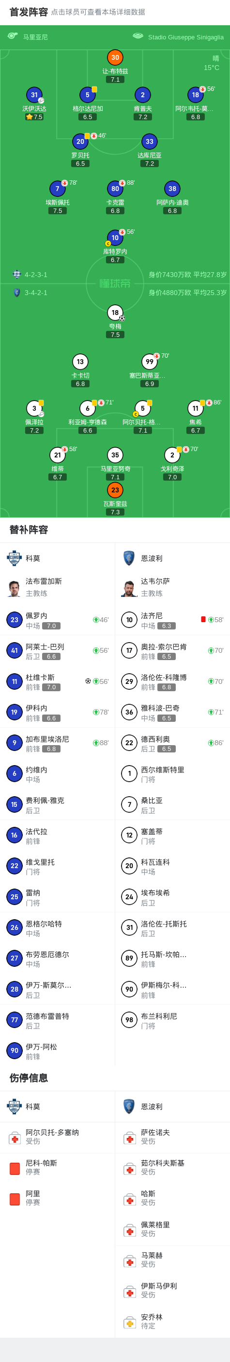 科莫1-1十人恩波利,杜维卡斯、夸梅均获首球,法齐尼染红
