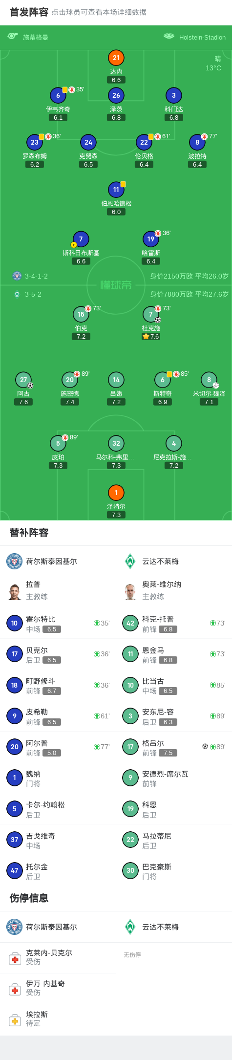 不莱梅3-0客胜基尔,杜克施、阿古破门,格吕尔建功