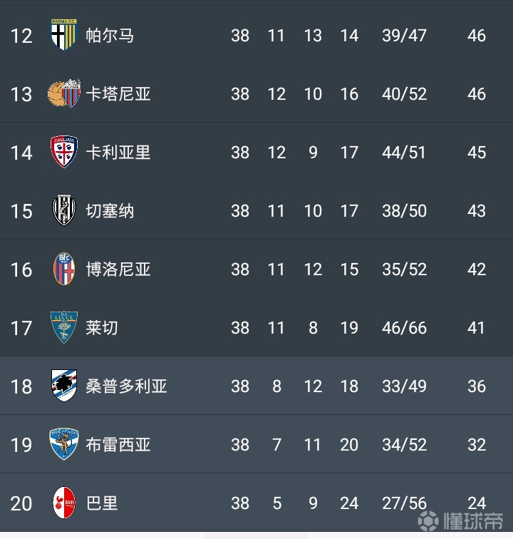 通过此积分榜我们可以看出:巴勒莫,帕尔马,卡塔尼亚,切塞纳,莱切,布雷西亚,巴里都已经退出意甲的舞台。如果说我们对巴勒莫的印象依旧深刻,那么莱切,卡塔尼亚这些好久没有消息的球队,究竟处境如何?
