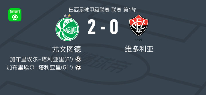 北京时间3月30日,巴西足球甲级联赛第1轮,尤文图德主场迎战维多利亚。比赛中,尤文图德的加布里埃尔-塔利亚里表现出色,成功完成梅开二度,为球队锁定胜局。最终,尤文图德以2-0战胜维多利亚。