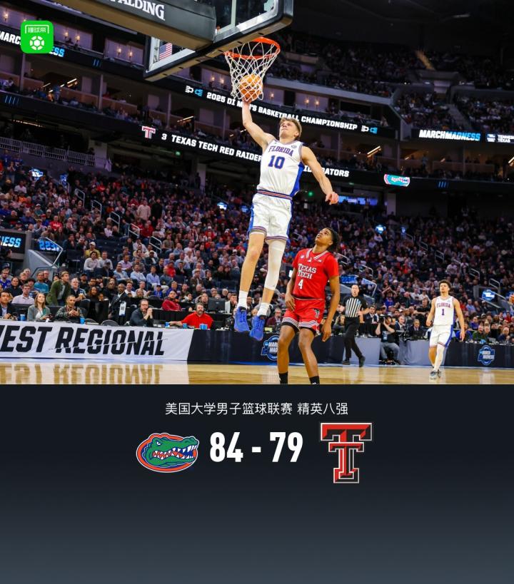 NCAA疯三:佛罗里达大学84-79逆转德州理工大学,晋级最终4强