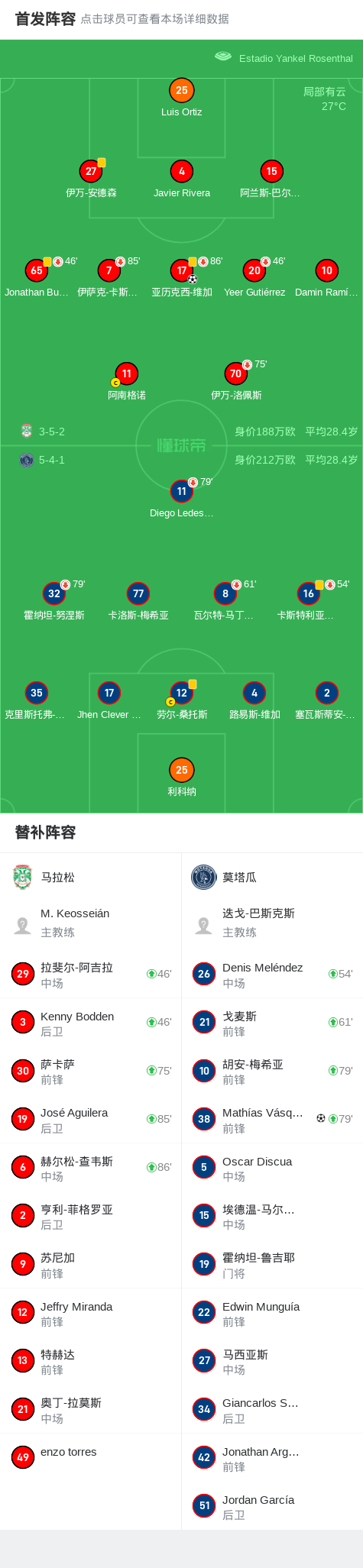 马拉松1-1莫塔瓜,亚历克西-维加破门,Mathías Vásquez扳平比分