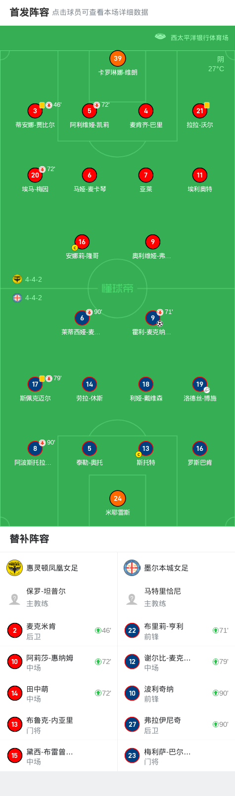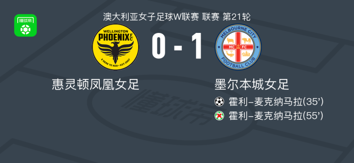 墨尔本城女足1-0惠灵顿凤凰女足,霍利-麦克纳马拉制胜球