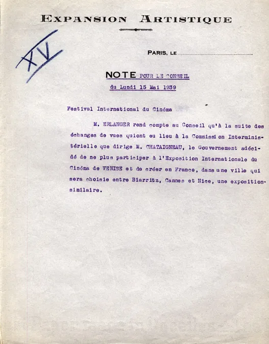 1939年5月31日,戛纳市和政府宣布国际电影节正式成立,6月,法国媒体宣布将举办电影节,由电影之父路易斯·卢米埃尔担任名誉主席。