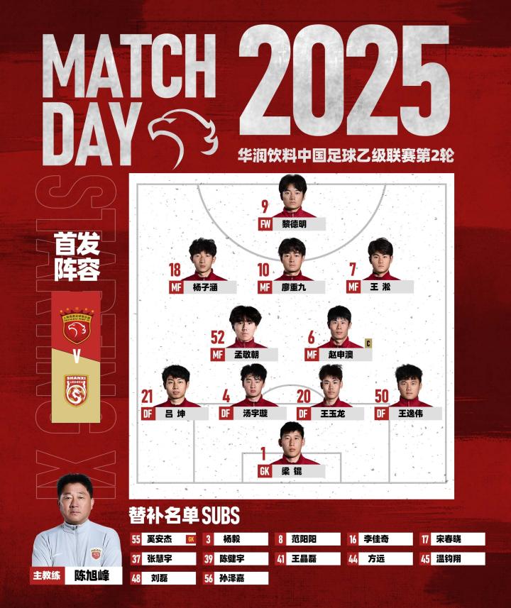 2025 中乙联赛第2轮,上海海港富盛经开vs山西崇德荣海,今日首发名单。