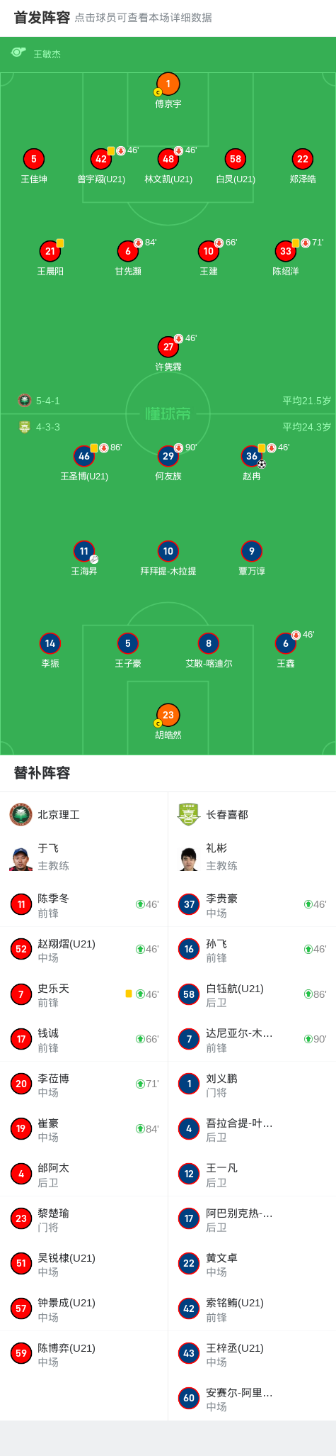 北京理工0-1长春喜都,赵冉制胜,史乐天失点