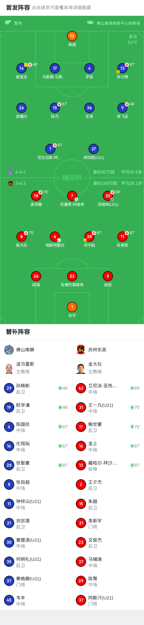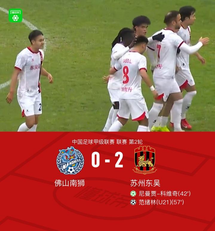 佛山南狮0-2苏州东吴,尼曼贾-科维奇点射,范绪林建功