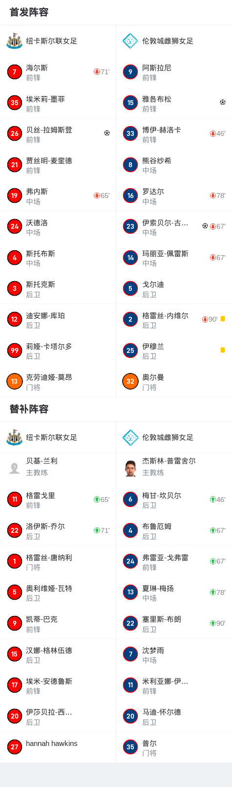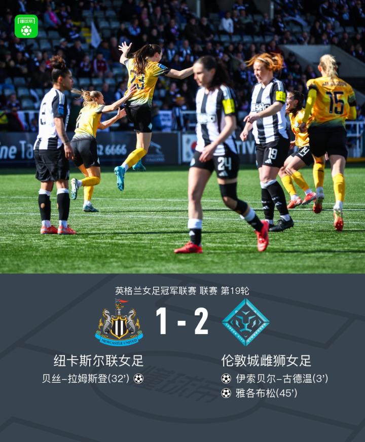 纽卡斯尔联女足1-2伦敦城雌狮女足,沈梦雨替补未登场