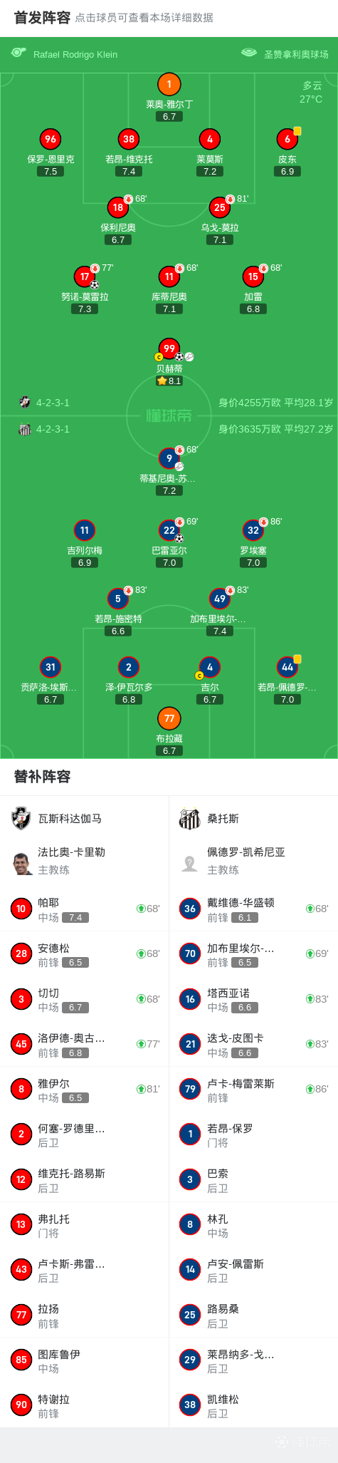 第21分钟,巴雷亚尔破门先拔头筹,桑托斯1-0
