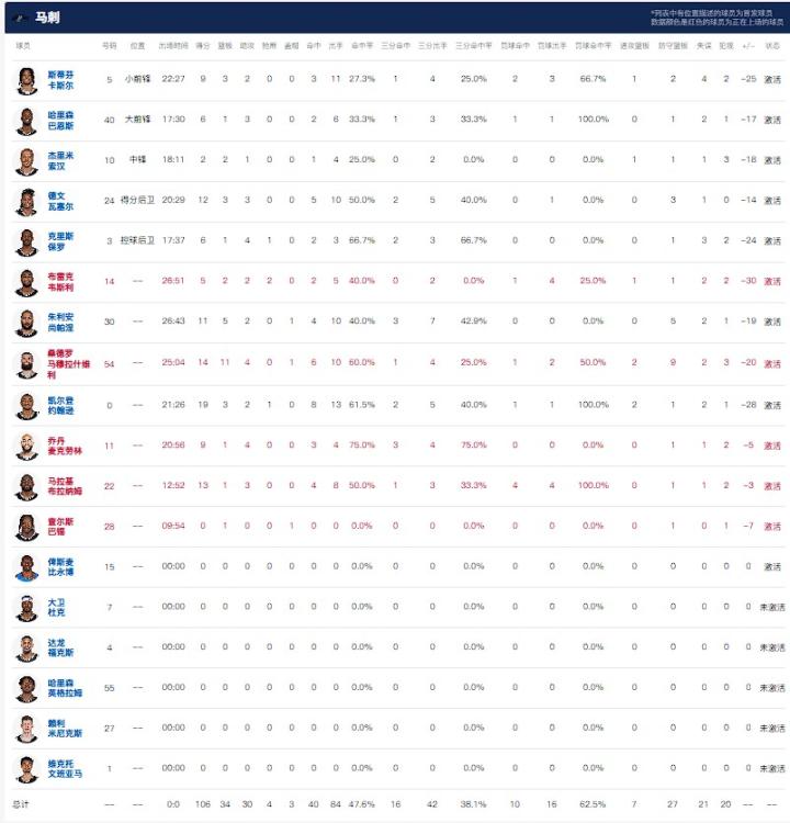 球员全场数据