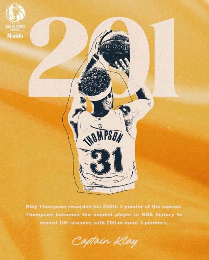 汤普森第10次完成单赛季投进200+三分,NBA历史中仅次于库里